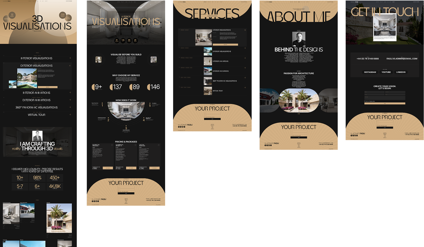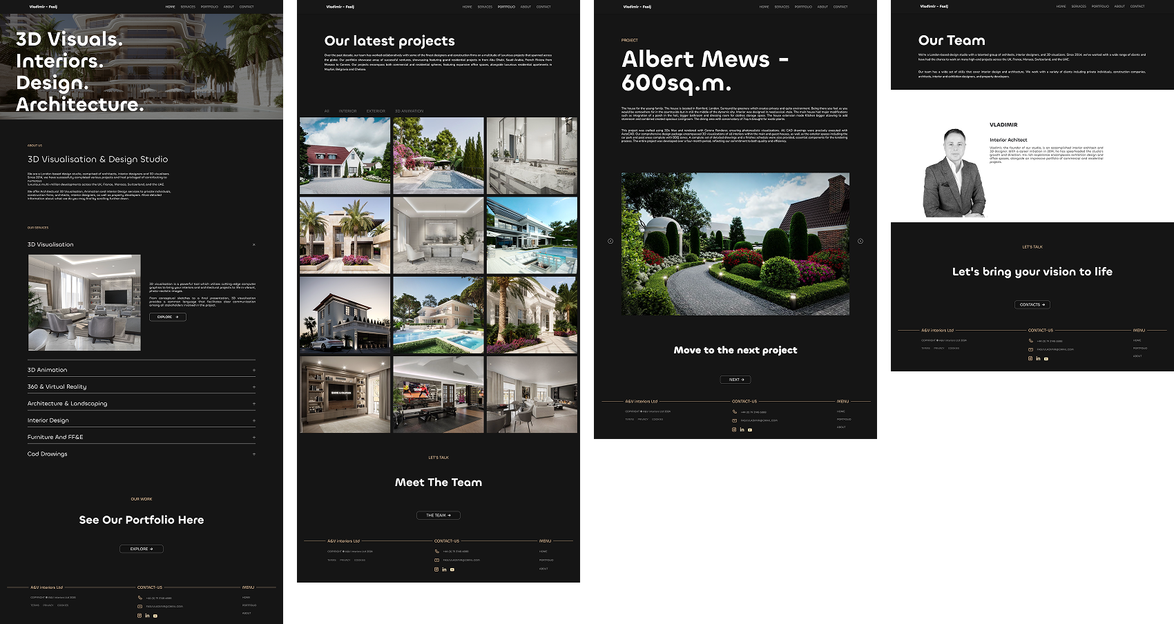 This project was a redesign of a portfolio website for 3D architectural visualiser Vladimir Fasij. The goal was to create a modern, premium-looking site that highlights his work, builds trust with referred visitors and makes it easy for them to explore projects and get in touch.