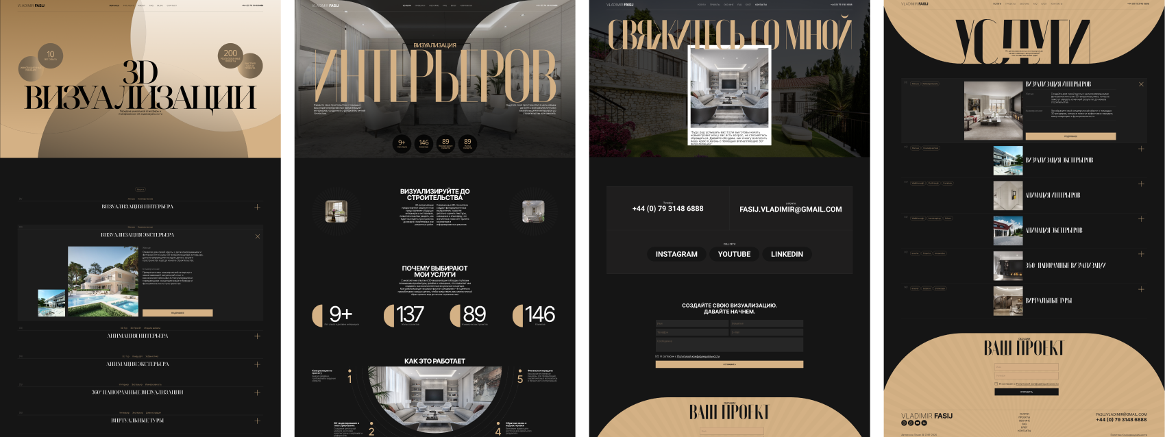 I used a dark theme with gold accents, balanced contrast and elegant typography to give the site a calm, high-end feel. This aligns the visual style with the quality of Vladimir’s work and with other premium studios in the field.
