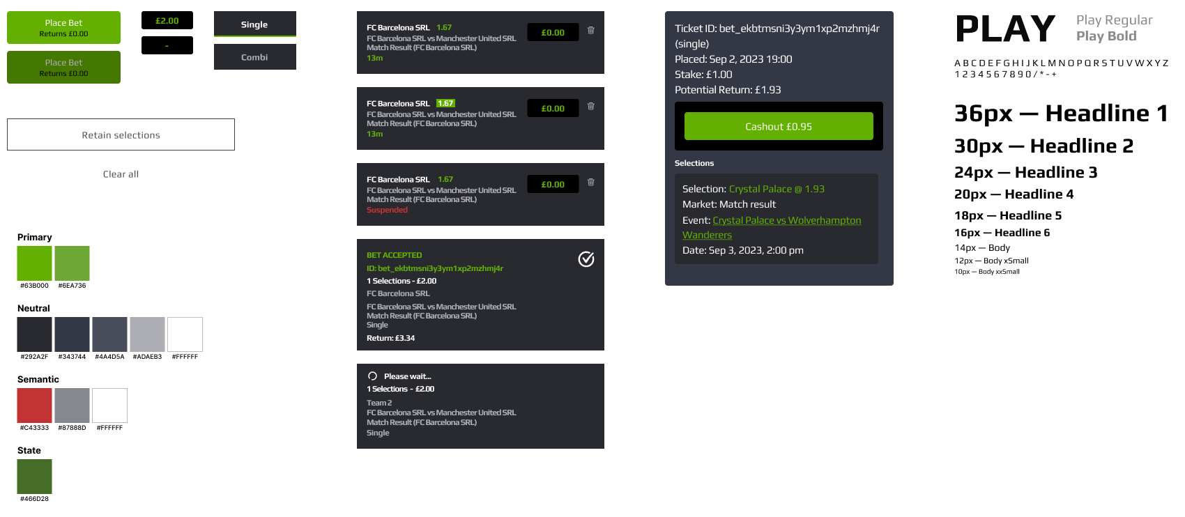 I documented spacing, states, typography and interactions so developers could build the component accurately. This keeps the experience consistent across screens and makes the betslip easier to maintain and extend.