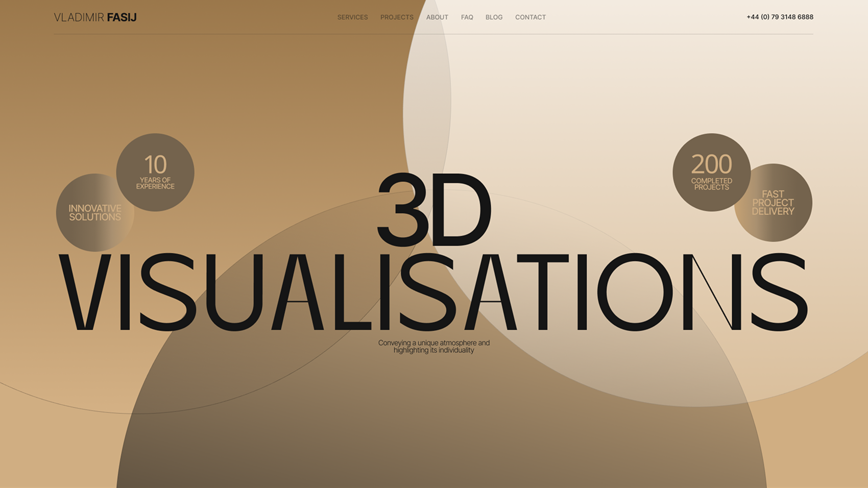 This project was a redesign of a portfolio website for 3D architectural visualiser Vladimir Fasij. The goal was to create a modern, premium-looking site that highlights his work, builds trust with referred visitors and makes it easy for them to explore projects and get in touch.